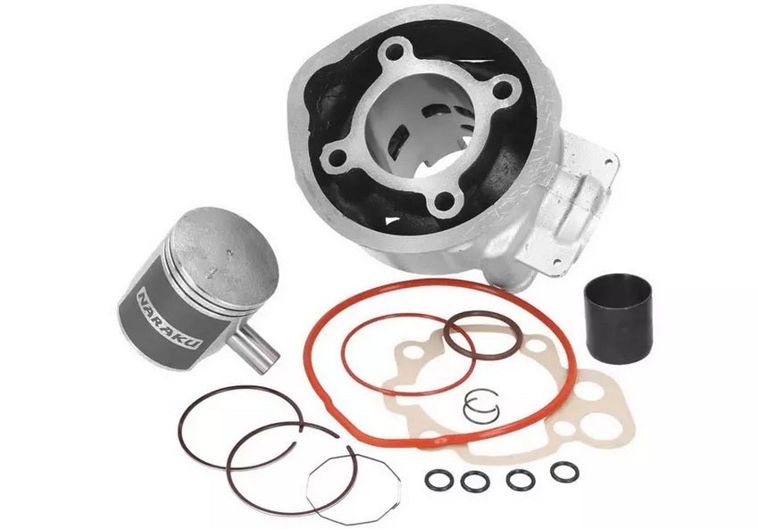 Cilindro completo de 70cc para motores Minarelli AM refrigerados por líquido, fabricado por Naraku. Incluye pistón con revestimiento de molibdeno para mayor durabilidad y rendimiento. Compatible con carburadores de 19 mm. Código productor NK102.68. Producto de calidad de la reconocida marca Naraku, diseñado para optimizar el funcionamiento de tu motor de dos tiempos.